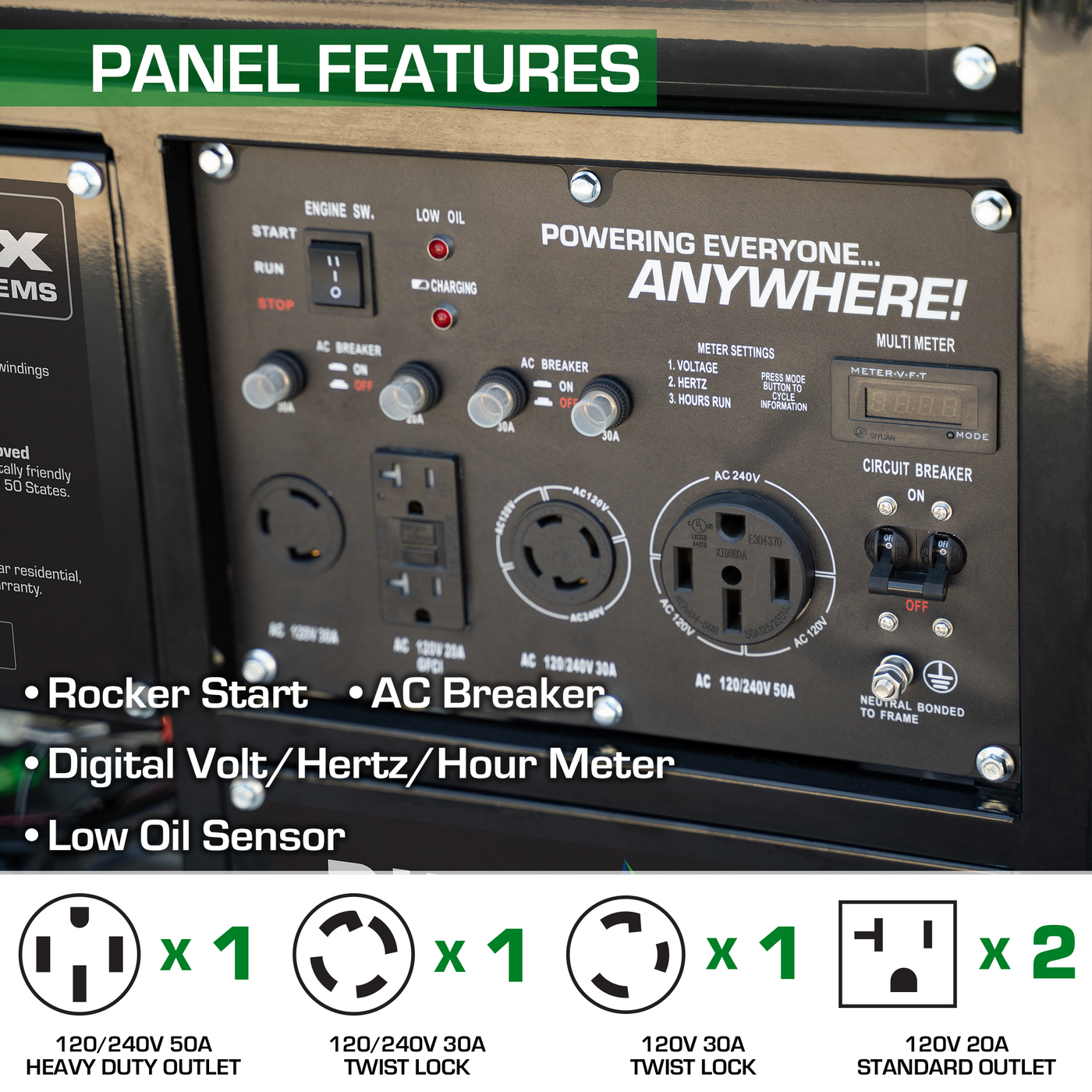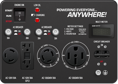 The XP11500EH comes equipped with a digital multimeter that shows voltage, frequency, and hours run, and a wide variety of outlets to suit your needs.