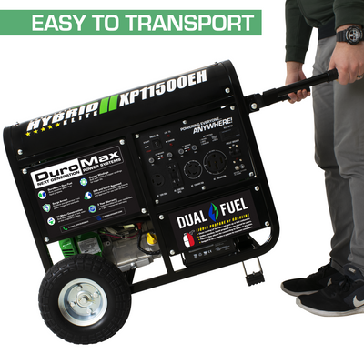 Be ready for anything with the DuroMax XP11500EH generator. Equipped to run on either gasoline or liquid propane, this dual fuel unit can perform anywhere that portable power is needed. Easy to transport over any terrain, from the neck of the woods to the downtown jobsite, the XP11500EH generator will keep you going.