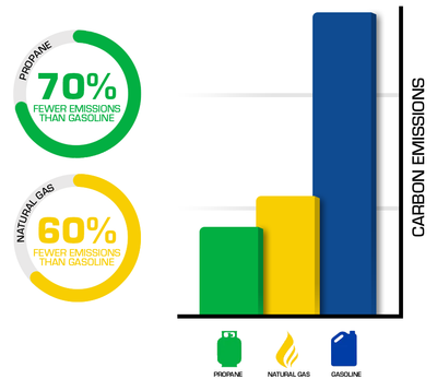 DuroMax is continually innovating and improving on existing technologies to reduce harmful emissions. DuroMax generators that run on either propane or natural gas produce lower carbon emissions than similar gasoline powered only units.