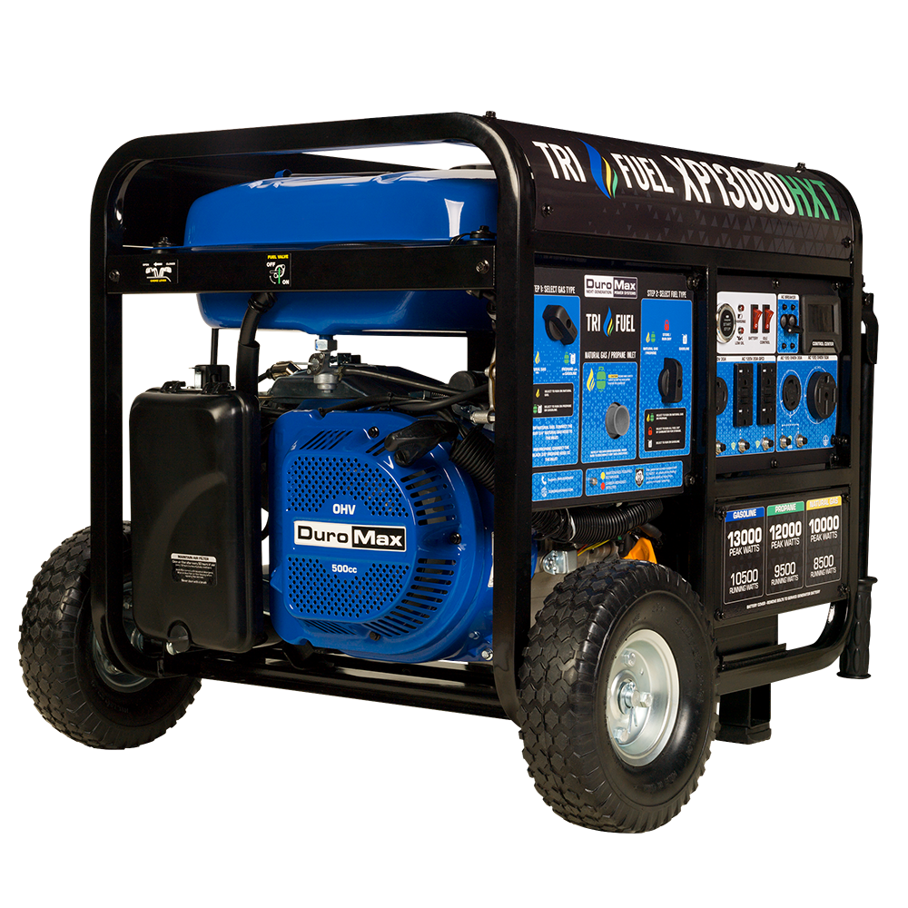 With 13,000 watts of peak power, the XP13000HXT will run on gasoline, propane, or natural gas, and stands alone as the largest Tri Fuel portable generator on the market.