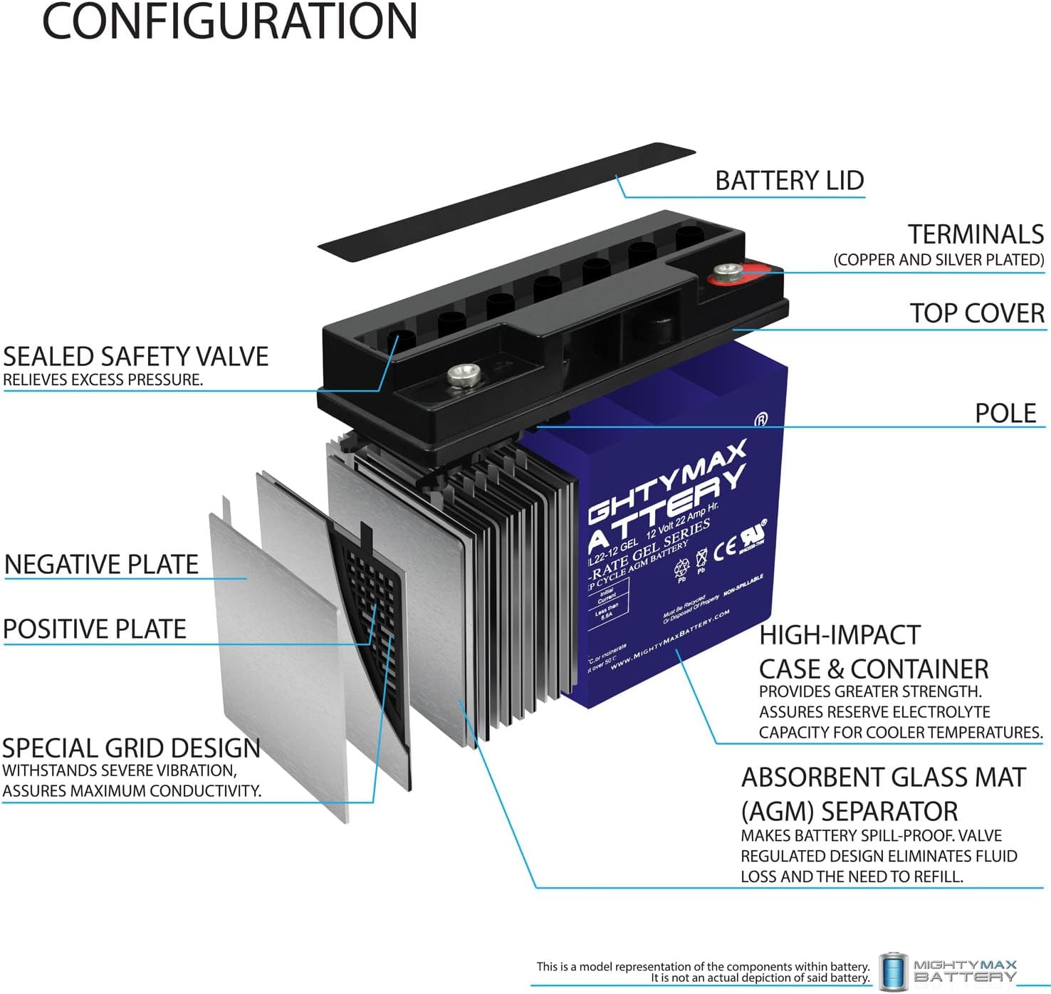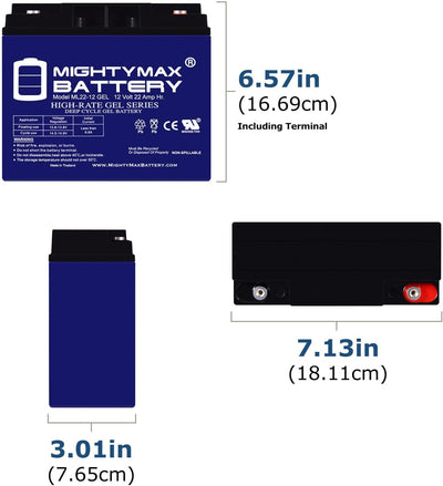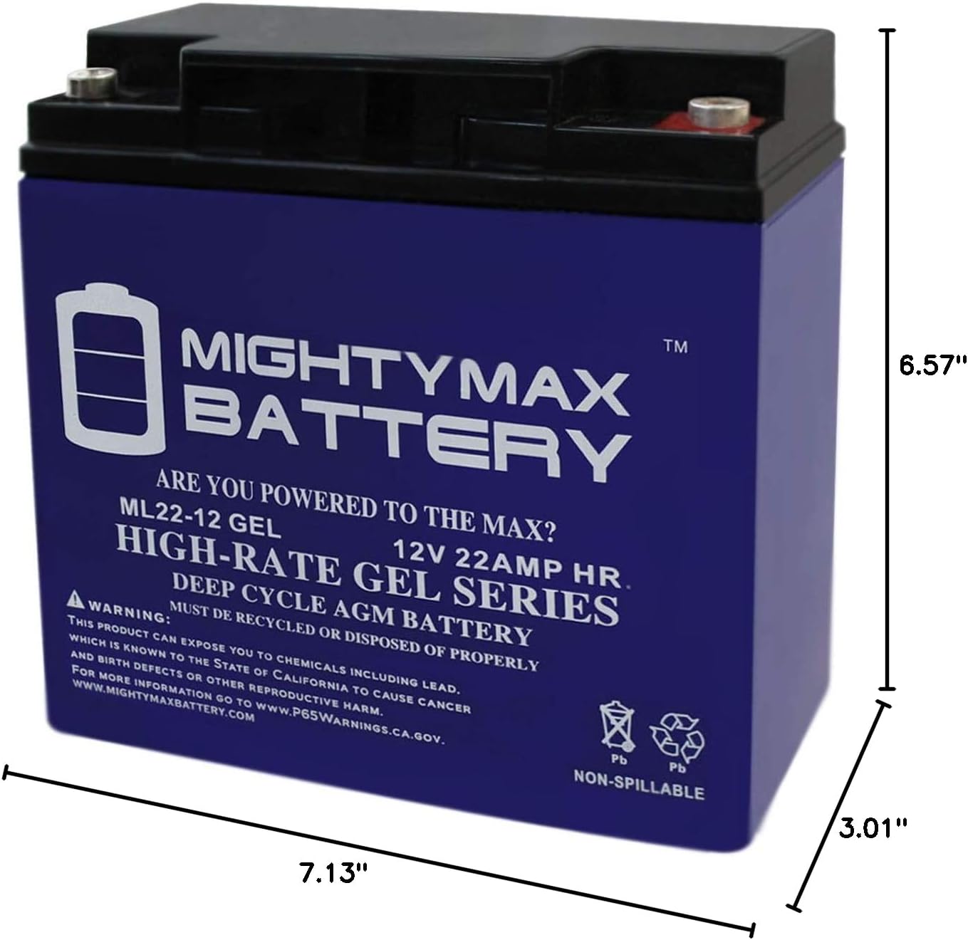 - Delivers reliable power with the Mighty Max ML22-12GEL 12 Volt 22 AH (Maintenance Free) battery.