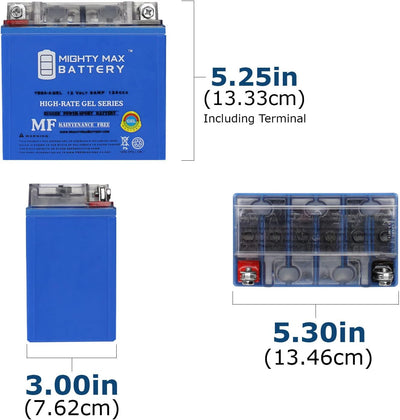 - Battery Dimensions in Inches L (5.30) x W (3.00) x H (5.25)